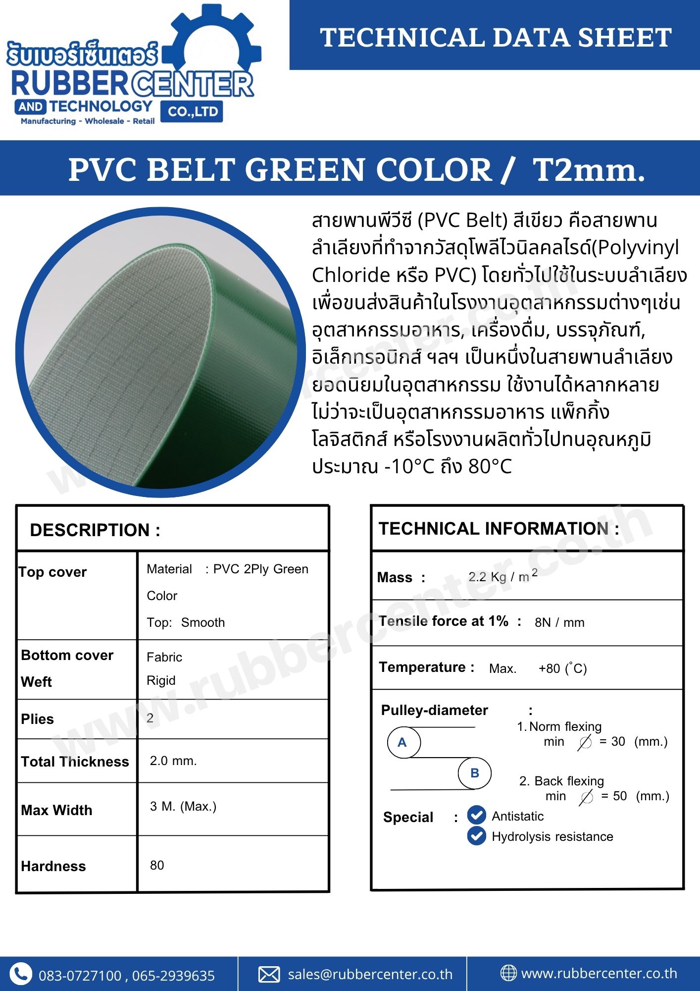 สายพานพีวีซี (PVC Belt) คือสายพานลำเลียงที่ทำจากวัสดุโพลีไวนิลคลอไรด์ (Polyvinyl Chloride หรือ PVC) โดยทั่วไปใช้ในระบบลำเลียงเพื่อขนส่งสินค้าในโรงงานอุตสาหกรรมต่าง ๆ เช่น อุตสาหกรรมอาหาร, เครื่องดื่ม, บรรจุภัณฑ์, อิเล็กทรอนิกส์ ฯลฯ เป็นหนึ่งในสายพานลำเลียงยอดนิยมในอุตสาหกรรม ใช้งานได้หลากหลาย ไม่ว่าจะเป็นอุตสาหกรรมอาหาร แพ็กกิ้ง โลจิสติกส์ หรือโรงงานผลิตทั่วไป ที่ รับเบอร์เซ็นเตอร์ เราจำหน่ายสายพานลำเลียง PVC คุณภาพสูง มีโรงงานพร้อมบริการตัดต่อ ติดตั้ง และจัดส่งเร็วทั่วประเทศ