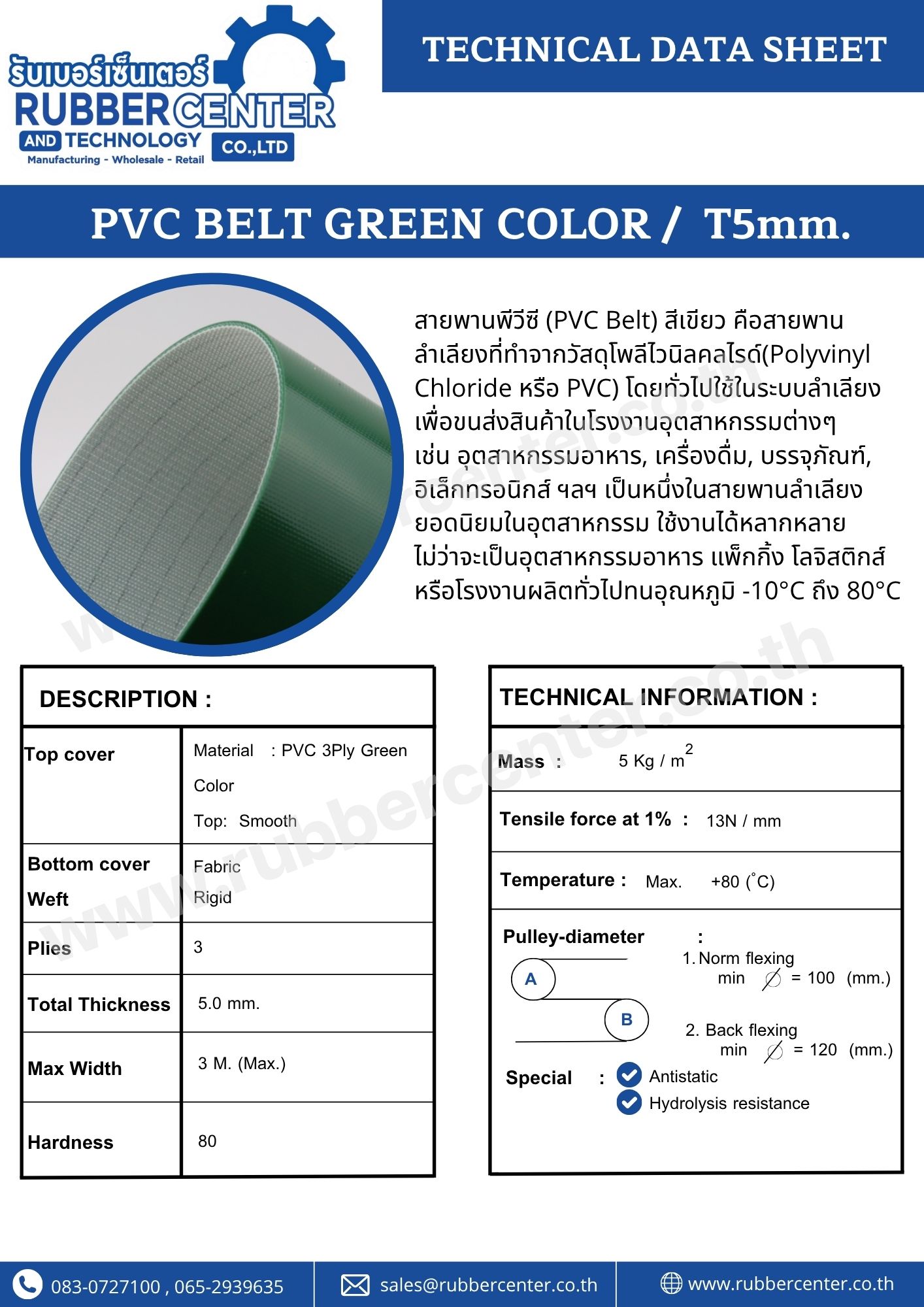 สายพาน PVC สีเขียว ท้องผ้าไนล่อน ความหนา 5mm.