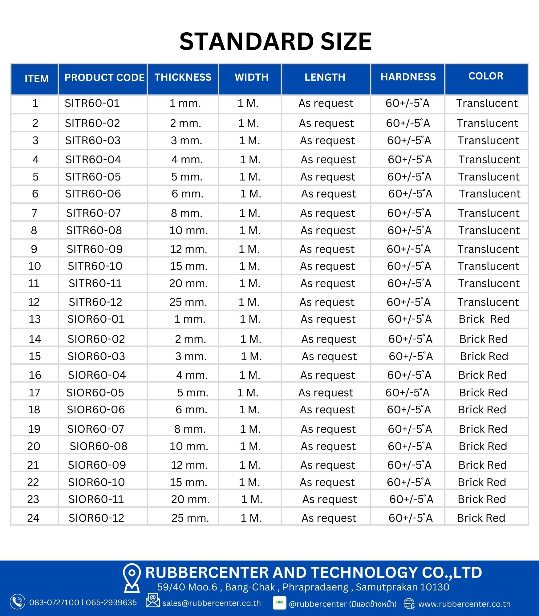 ใช้เป็นซีลเตาอบไอน้ำหรือใช้กับอุปกรณ์ที่ทนความร้อนสูง หรือทำเป็นปะเก็นหรือแผ่นรอง มีความทนทานและยืดหยุ่นได้ดี สามารถใช้เป็นชิ้นส่วนประกอบเครื่องจักร เครื่องซีลถุง ใช้ในการวิจัยวิทยาศาสตร์ ห้องแลป อุตสาหกรรมอาหาร และ วงการแพทย์ โรงงานอุตสาหกรรม มีคุณสมบัติ พิเศษ สามารถกันน้ำมัน ทนอุณหภูมิความร้อนและเย็น ทนสภาพโอโซนได้ดี สะอาด ปลอดภัย ไร้กลิ่น มีสถานะเป็นกลางทางเคมี เป็นฉนวนไฟฟ้า สามารถทนความร้อนได้สูง มีความต้านทานต่ออุณหภูมิได้ดีเยี่ยม สามารถทนความร้อนได้สูงถึง -50 ํC To +250 ํC ยินดีให้คำปรึกษา และให้คำแนะนำการใช้งานโดยผู้เชี่ยวชาญด้านยางโดยตรง